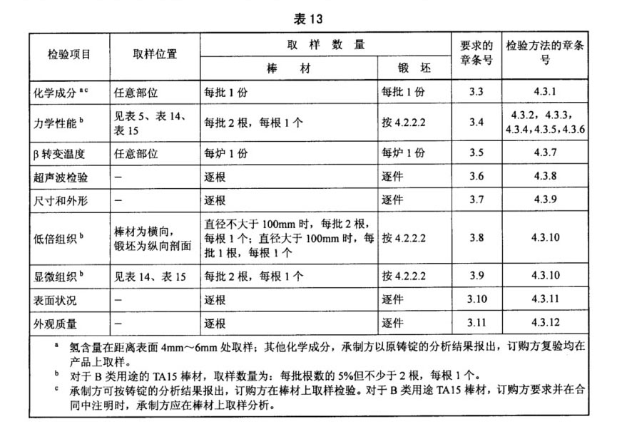 3.6.1 除B類用途的TA15鈦合金棒材外,棒材或鍛坯應按GB/T 5193的規定進行超聲波檢驗,其驗收級別應符表10的規定。